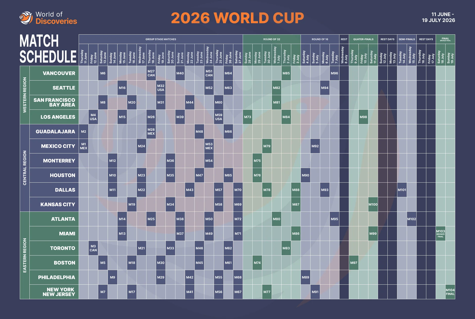 Clique aqui para ver o calendário completo do Campeonato do Mundo de 2026 USA Canadá México