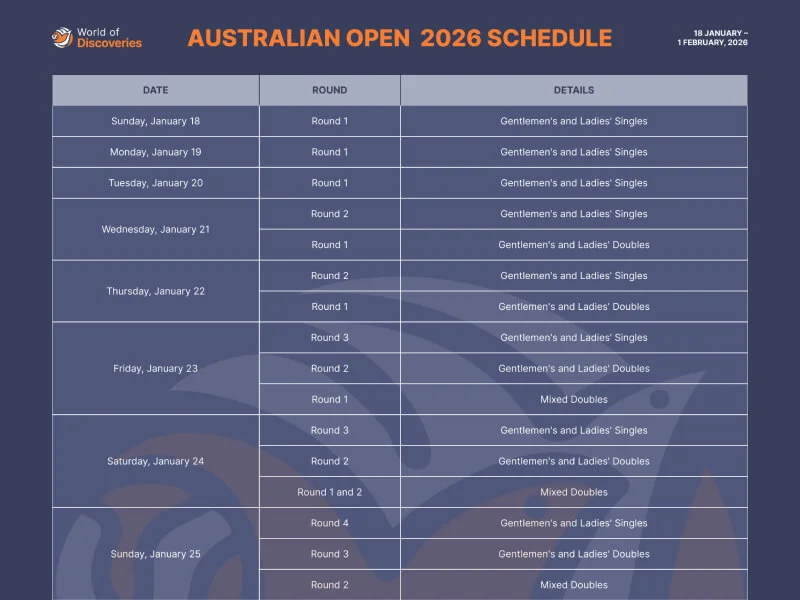 Comece a época de ténis no vibrante Open da Austrália, onde os os jogadores mais bem classificados de todo o mundo competem em campos duros sob o o sol de verão. Conhecido pela sua atmosfera eletrizante e fãs apaixonados apaixonados, este torneio oferece partidas emocionantes e um gostinho da cultura australiana. Junte-se a nós em janeiro para testemunhar um ténis de classe mundial, explorar as deslumbrantes paisagens urbanas e mergulhar numa emoção desportiva inesquecível. inesquecível.